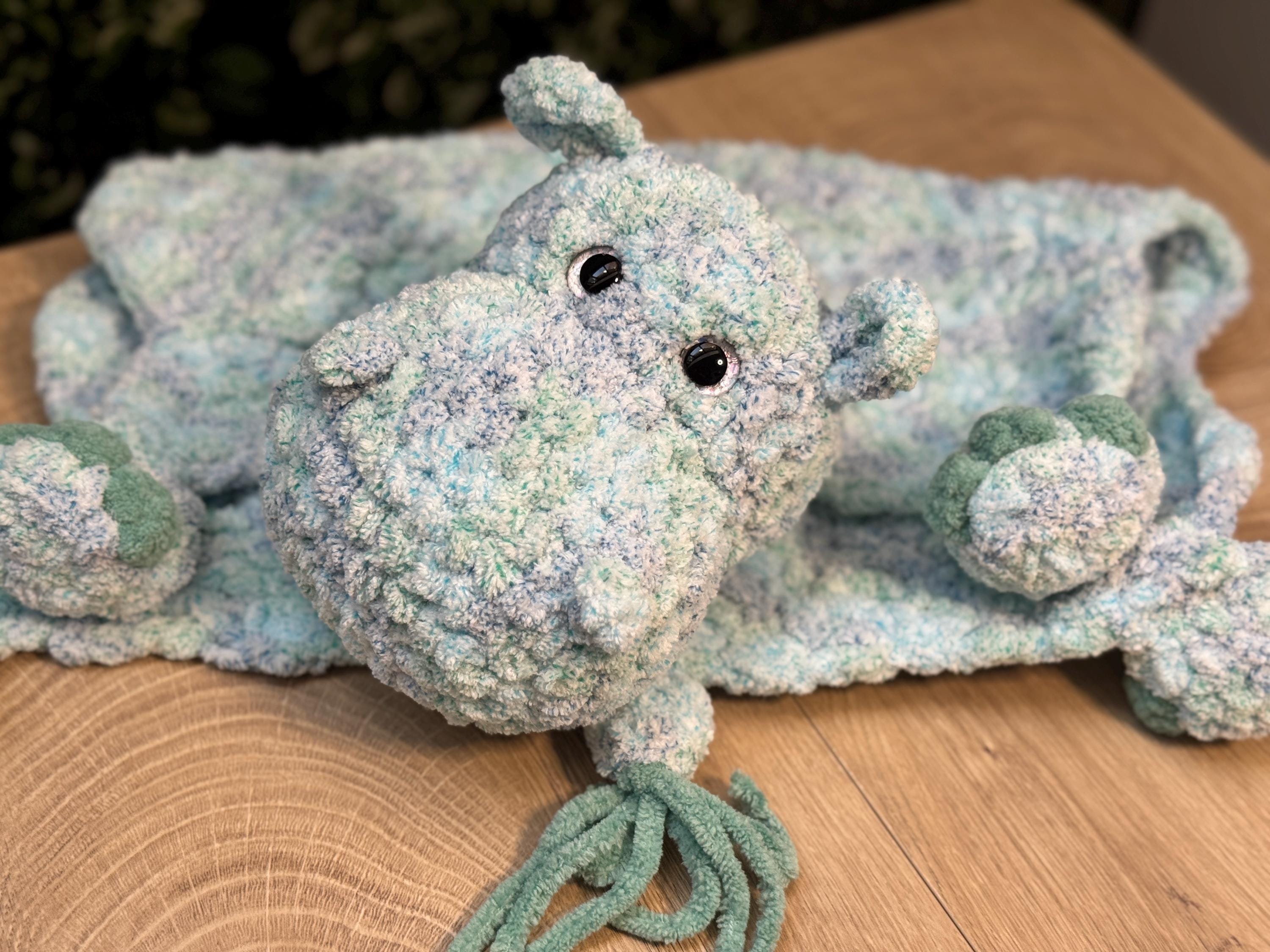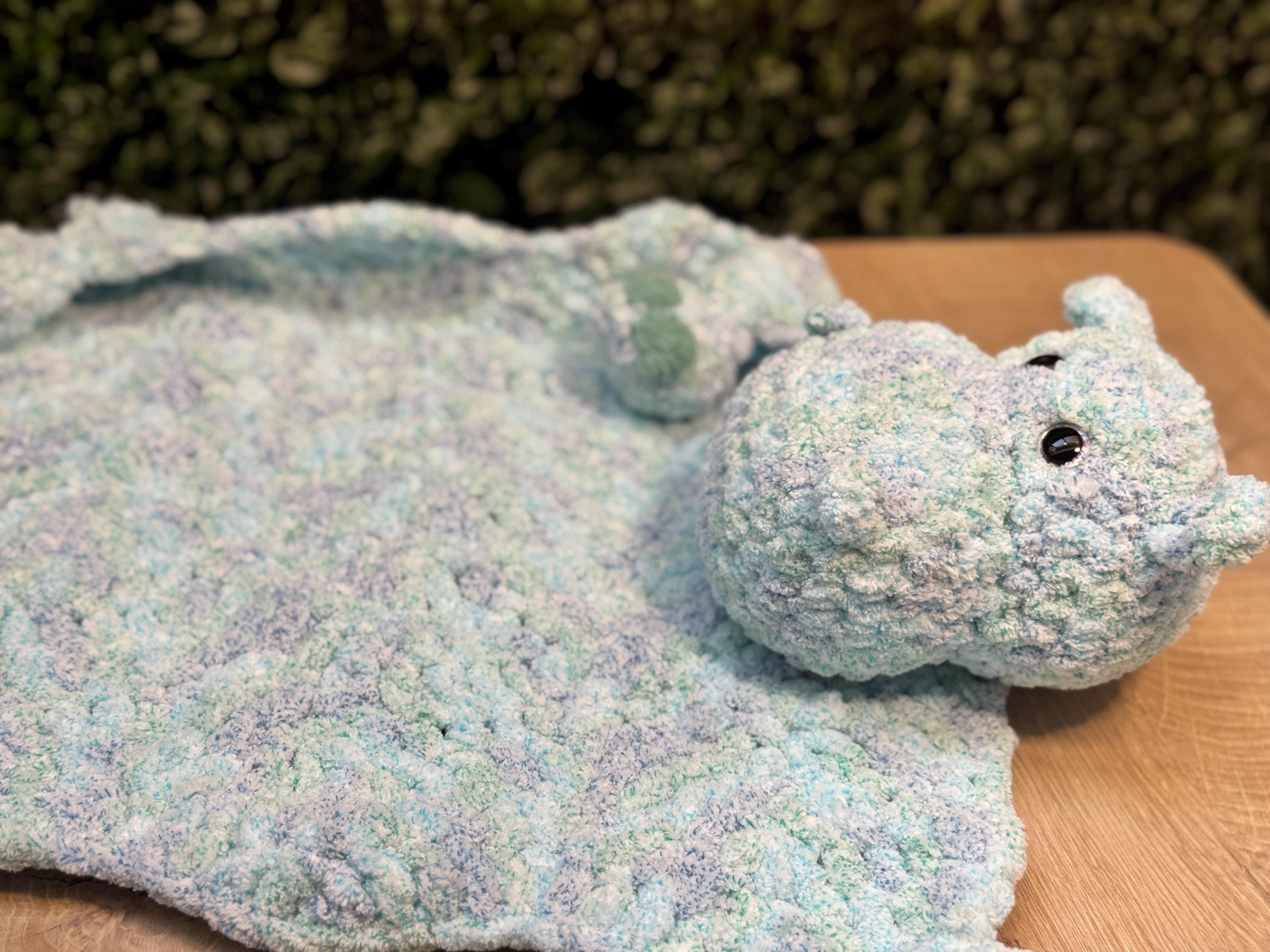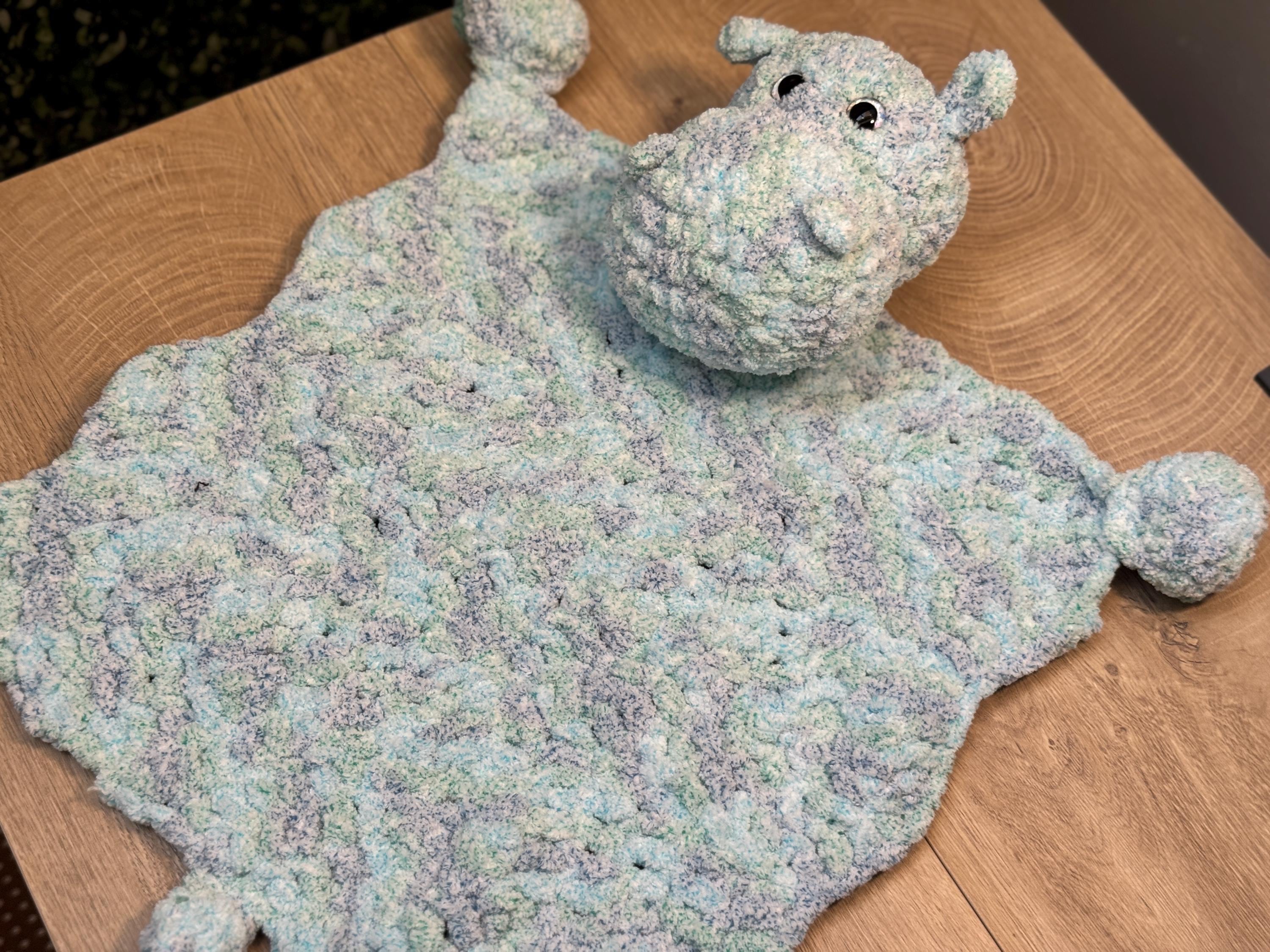 Say hello to this adorable Hippo Snuggler — a super-soft, cuddly blanket friend perfect for little ones or anyone who loves cozy, quirky companions! Handcrafted with plush, textured yarn, it’s both comforting and cute.
