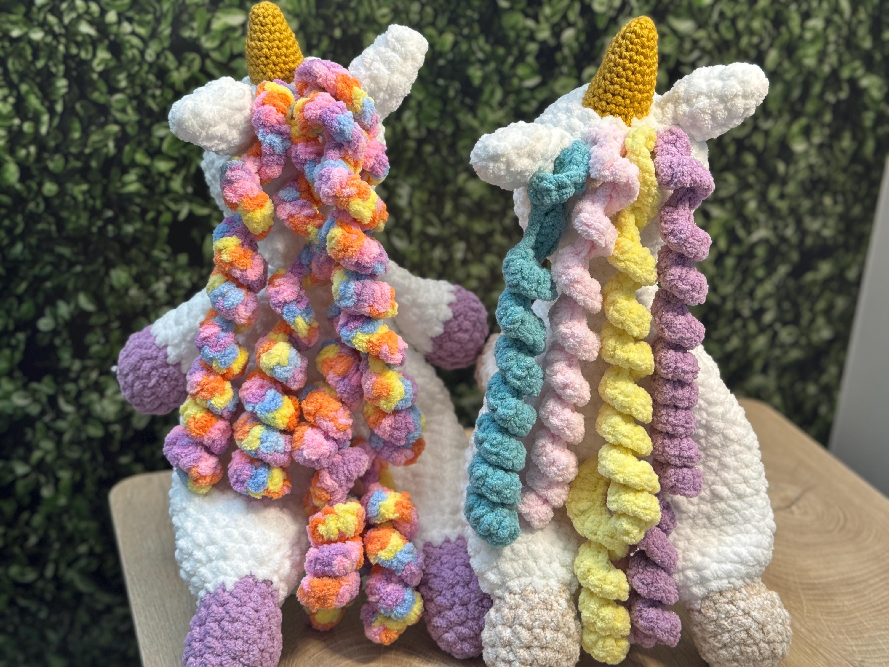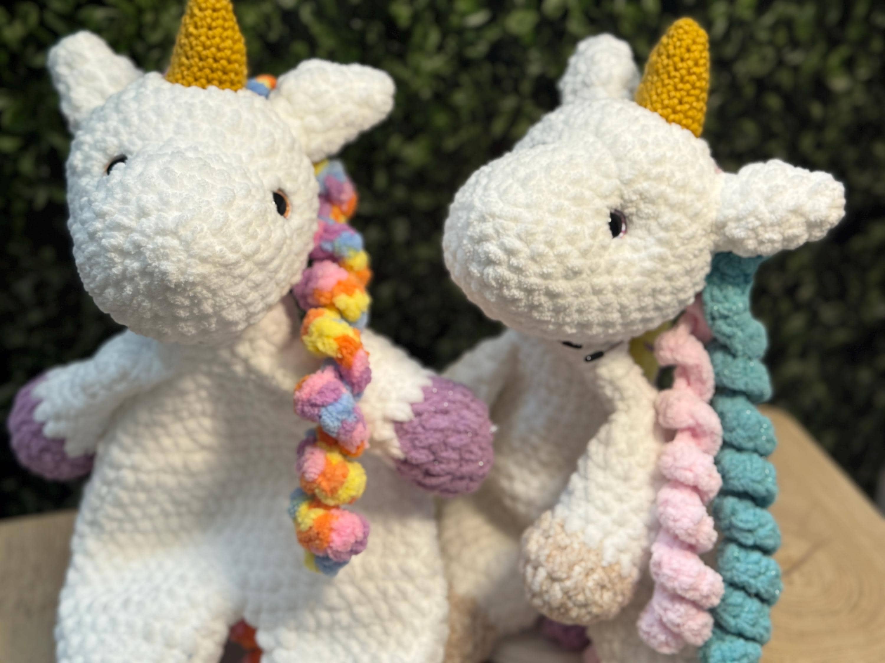 Each snuggler is crafted with super-soft, velvet-style yarn that’s gentle on sensitive skin and perfect for little hands to hold. These make wonderful baby gifts, toddler comfort toys, or keepsakes for any unicorn lover.