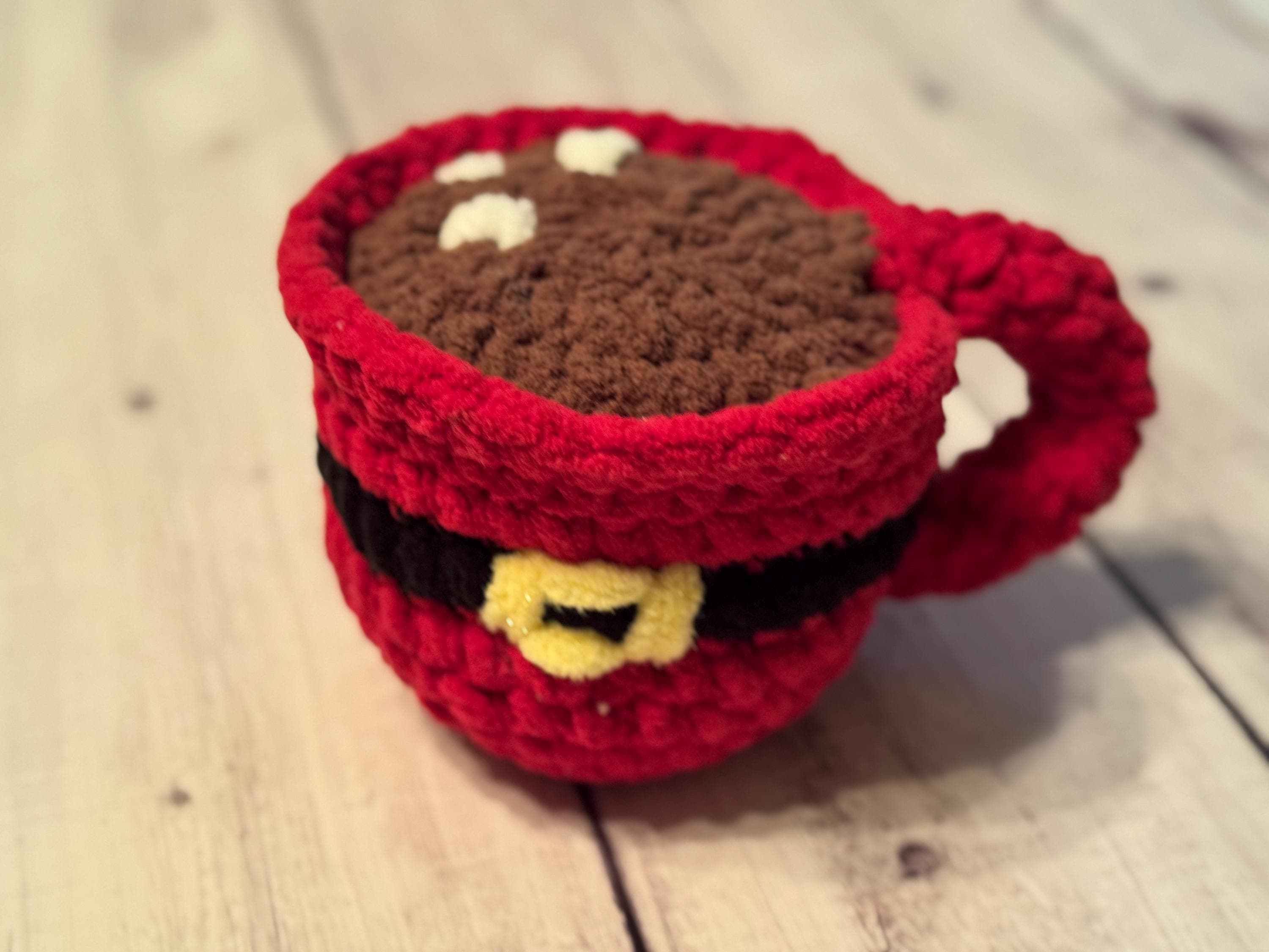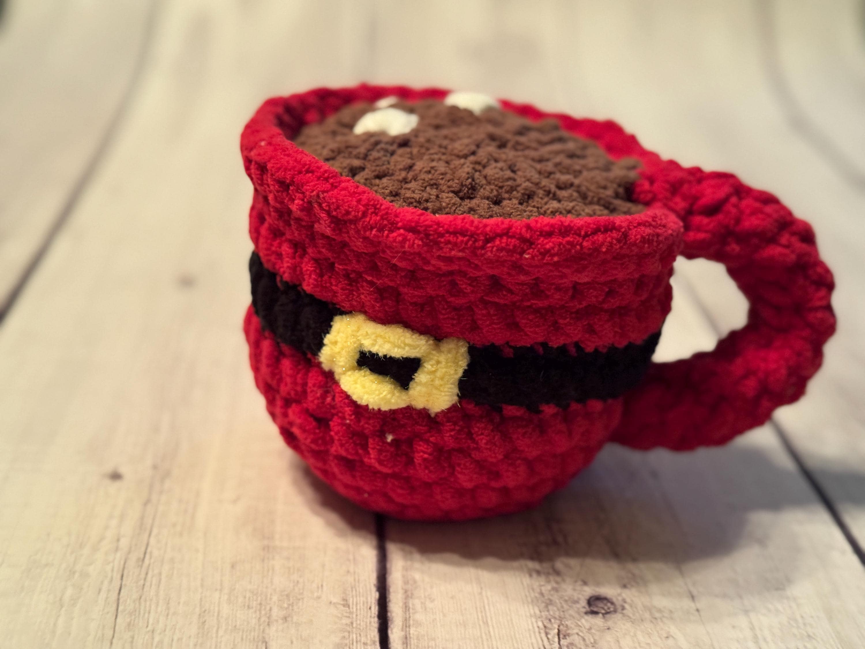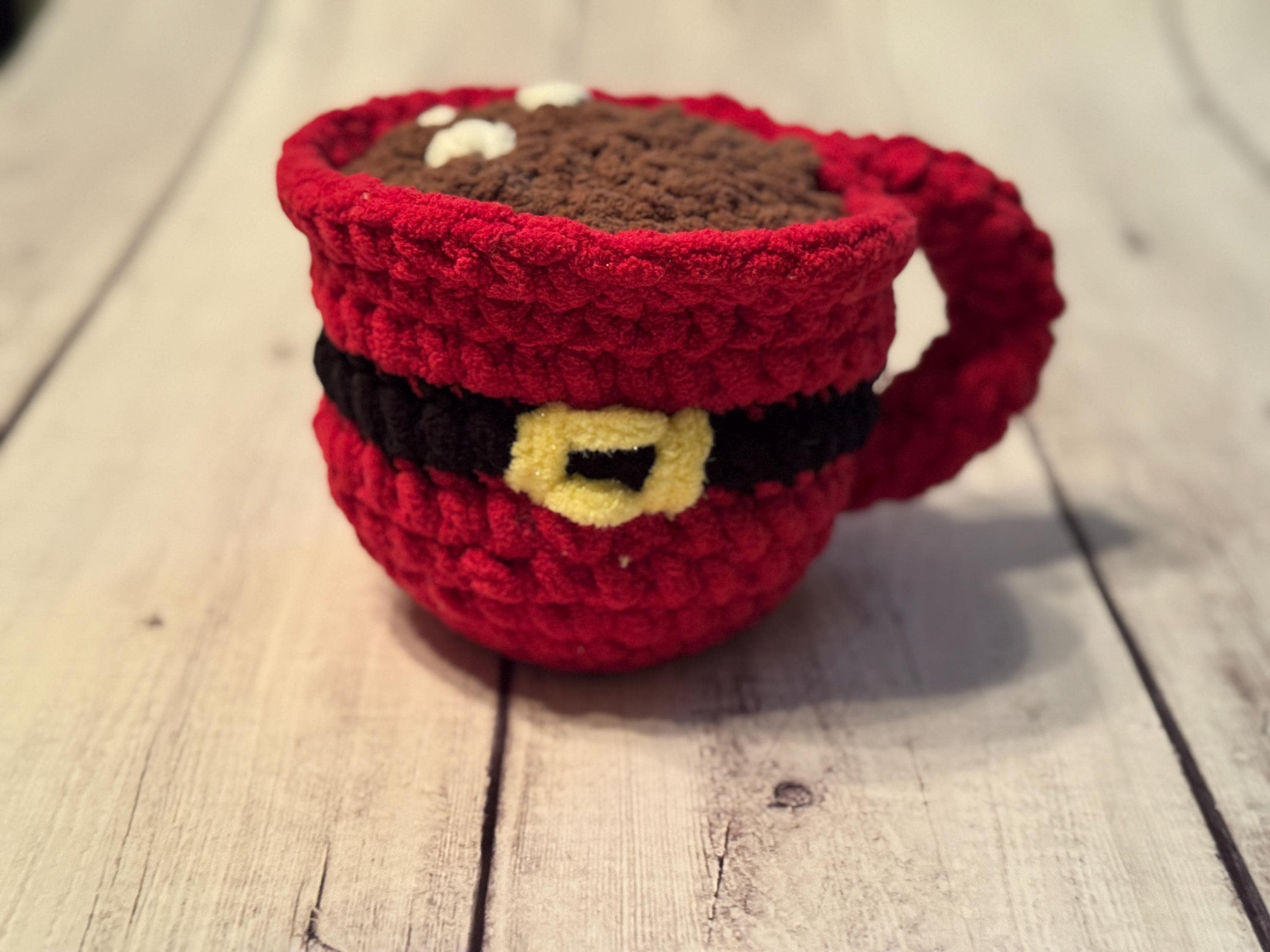 ✨ Features ✨ * **Handmade Physical Item:** Each mug is crocheted with care and ready to display, not a digital pattern. * **Festive Details:** Santa-themed cup design with cheerful marshmallow accents adds whimsical holiday charm. * **Soft & Lightweight:** Perfect for display, collecting, or gentle play. * **Unique Gift Idea:** Makes a charming handmade gift for friends, family, or anyone who loves cozy holiday décor.